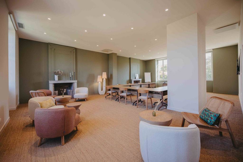 À seulement 15 minutes de Bordeaux, Sainte Raphine propose des salles de réunion entièrement privatisables, adaptées à tous vos besoins professionnels. Que vous organisiez une petite réunion ou un séminaire d’envergure, chaque espace est modulable et équipé des dernières technologies. Profitez d’une connexion fibre optique ultra-rapide et d’écrans haute définition avec ports HDMI pour garantir le bon déroulement de vos présentations et visioconférences.